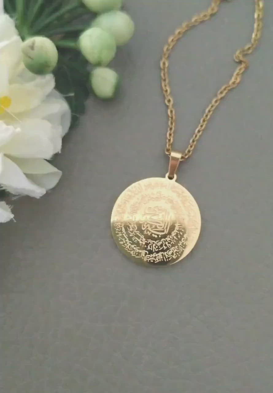 Ayatul Kursi Four Qul Necklace, Two sides Surah Necklace, Gold Islamic Jewelry, Arabic Jewellery, Women Necklace Pendant, Eid Gift
